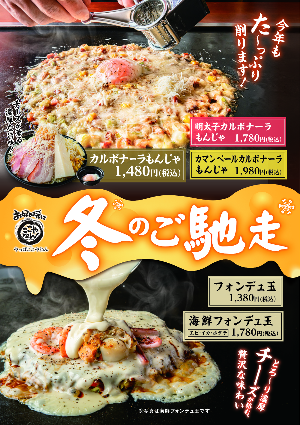 【季節限定】カルボナーラもんじゃ&フォンデュ玉